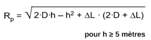 a) Sous le plan horizontal situé à 5 m au-dessous de la pointe, le volume protégé est celui d’une sphère dont le centre est situé sur la verticale d’une pointe à une distance D et dont le rayon est :